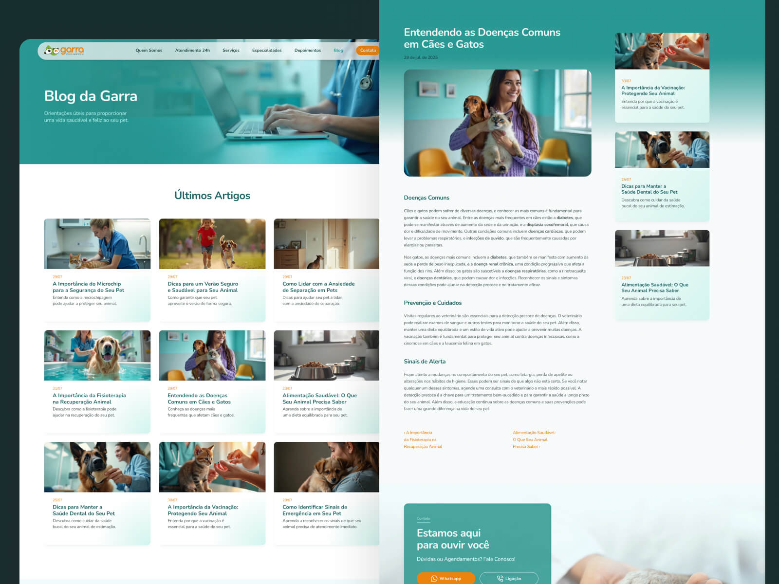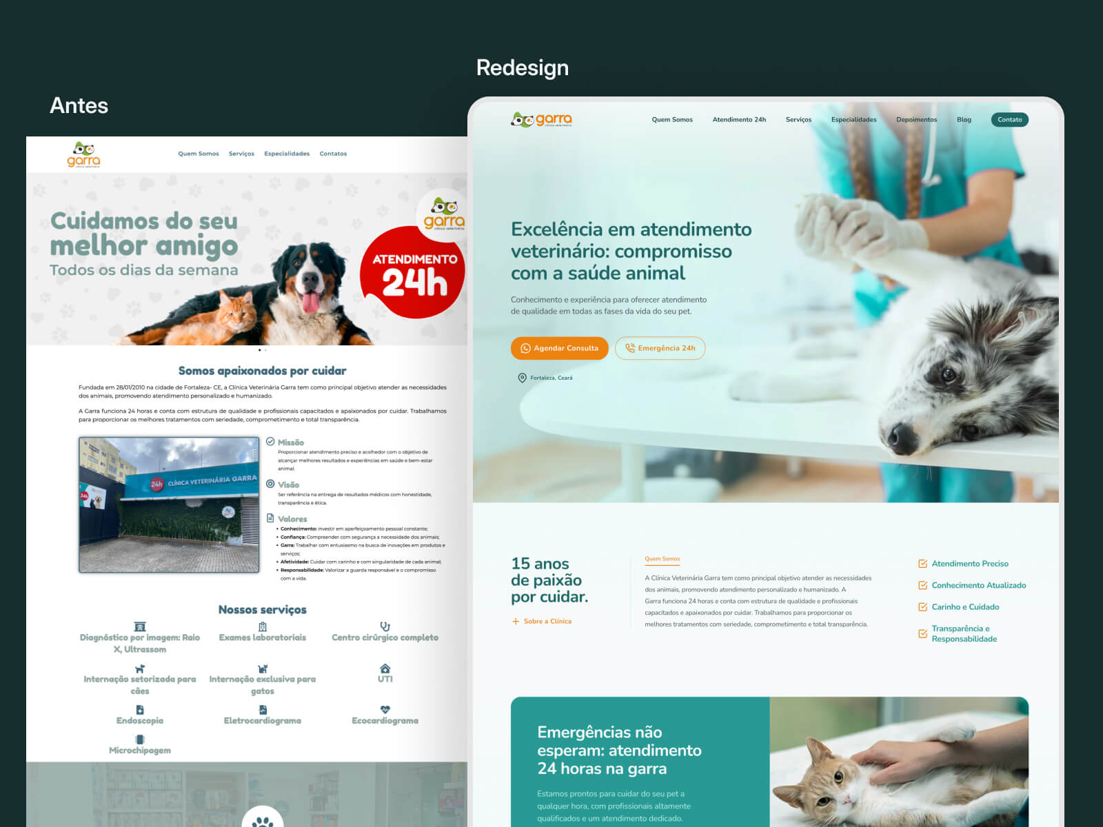 O desafio era criar um equilíbrio entre a seriedade e o afeto que existe nesse universo. Reformulados toda a paleta de core e tipografia. Desenvolvemos novos assets que dão padrão a página e permitem uma navegação mais fluida, conferindo assim, mais credibilidade.