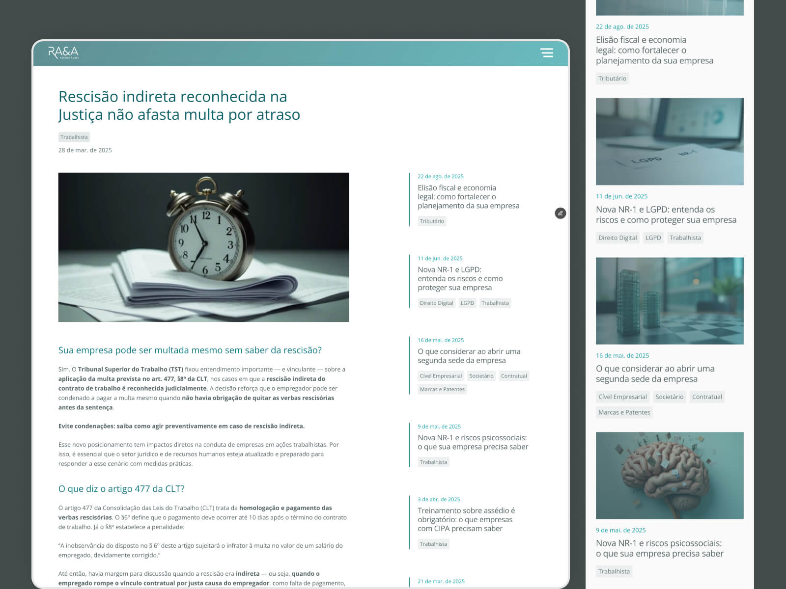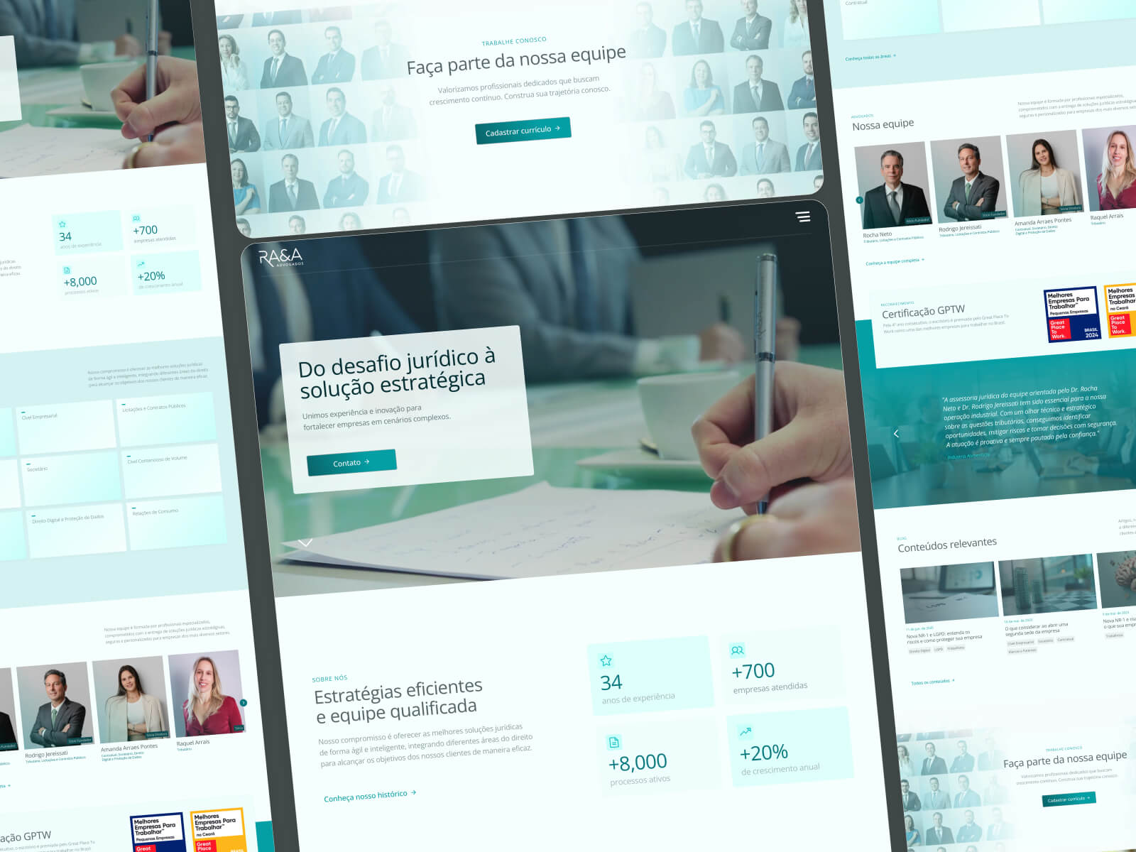 O desafio foi criar uma página moderna, afastando-se da estética clichê comum a escritórios de advocacia. O blog assumiu papel central no projeto, com a criação de um CMS simples e eficiente, que garante mais autonomia, agilidade e atualização contínua de conteúdo.