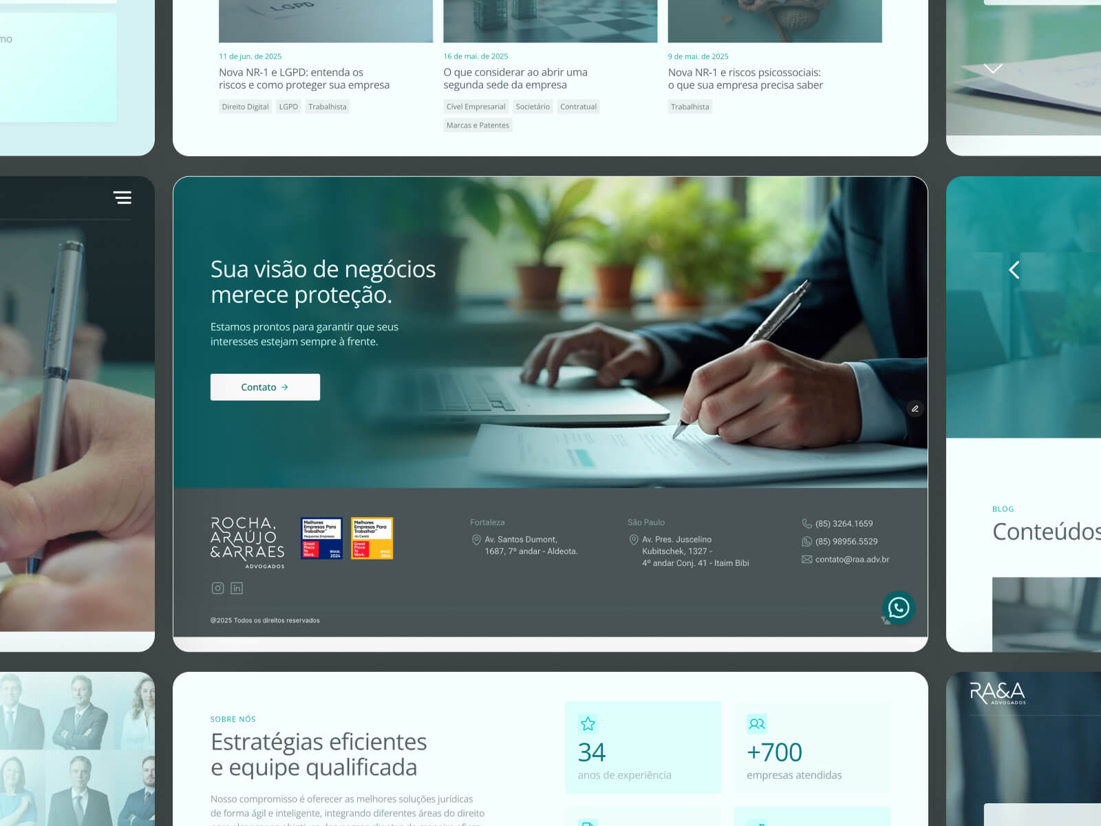 O escritório Rocha, Araújo e Arraes Advogados possui mais de 34 anos de atuação e iniciou uma forte presença no meio digital. O projeto teve como objetivo elevar o padrão da página institucional, transformando-a em um ativo estratégico para a marca.